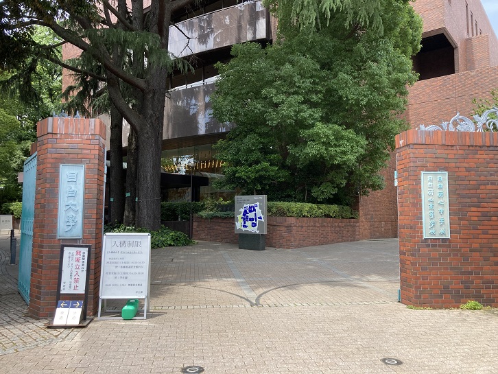 七の坂通りと六の坂通りを通って高台のてっぺんに位置する目白学園に向かいます。煉瓦色の立派な校舎が緑の木々に映えます。