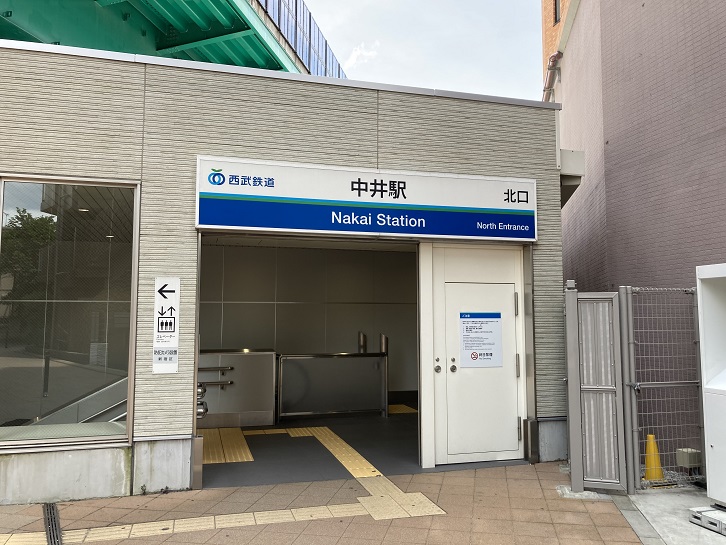 ゴール地点の西武新宿線中井駅北口にやってきました。駅の横には妙正寺川が流れ、駅舎の上には山手通りが高架で通っています。