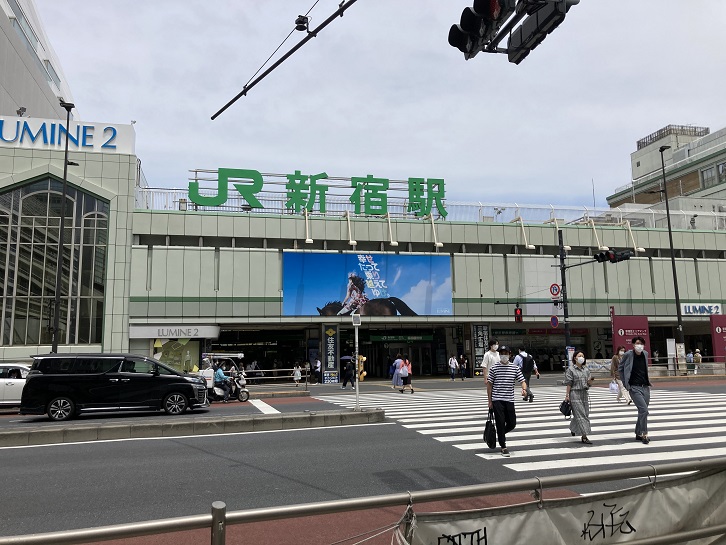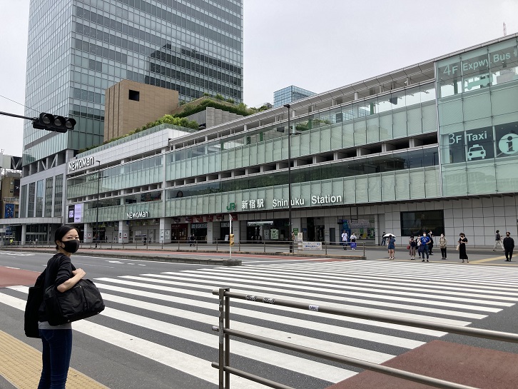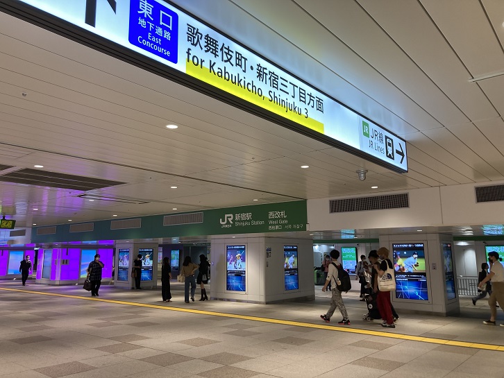 ゴール地点のJR新宿駅西口に着きました。つい最近までは、新宿駅西口から東口に行くには、誘惑の多い地上の思い出横丁を経由するか、丸ノ内線の新宿駅に沿った地下通路を通るしか手段がありませんでした。2020年7月19日、長年の念願だった新宿駅東西自由通路がついに完成し、昭和の時代から続いてきた西口と東口のアクセスの不便さが解消されました。
