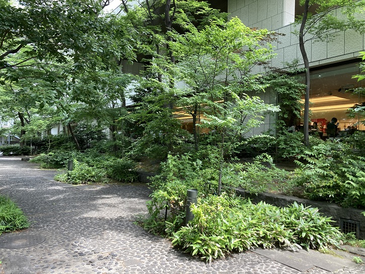 新宿副都心の超高層ビル群の先頭を切って1971年に竣工した京王プラザホテルには、武蔵野の雑木林を模した庭園が造られています。一年を通じて四季の変化が美しく、しばし緑陰で涼んだり、休憩していく人もいます。雑木林庭園は、ランドスケープデザインの新時代を切り拓き、自らを「外空間作家」と称した深谷光軌氏がホテル開業時に手がけた作品で、武蔵野の原風景を高層ビルが建ち並ぶ都市景観に見事に調和させた傑作として、今なお語り継がれ、訪れた人々を癒しています。「みどりの新宿30選」にも選ばれています。