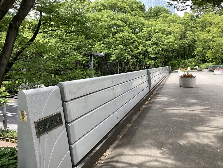 新宿中央公園は「ふれあい通り」によって南北に分かれています。ふれあい通りを跨ぐ歩行者用陸橋には「公園大橋」という名前が付いています。新宿副都心を地図で見ますと、正方形の区画が整然とマス形に並んでいます。これはかっての淀橋浄水場の浄水池をそのまま利用して区割りが行われたためです。