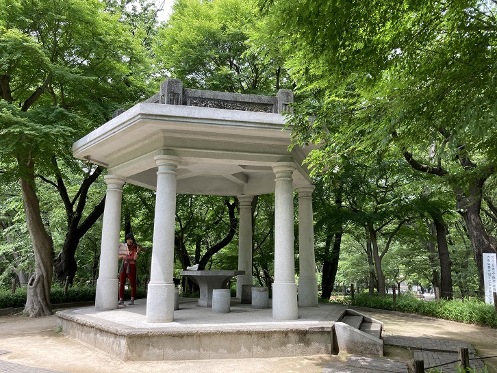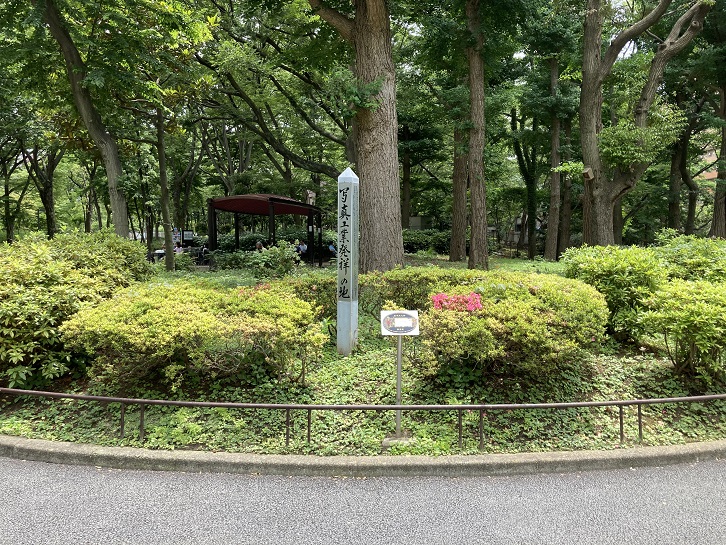 新宿中央公園の高台は富士見台と呼ばれています。淀橋浄水場時代から存在していたもので、頂上に六角堂が建っています。高層ビルのなかった当時は富士山が綺麗に眺められたことでしょう。石碑には、そのいわれが記されています。