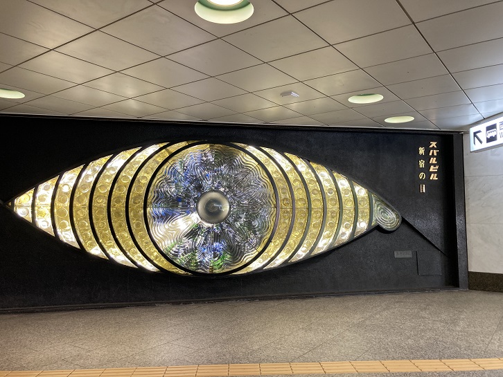 新宿スバルビルには、かって富士重工業(現在のSUBARU)が本社を置いていました。富士重工業は2014年に移転し、その後スバルビルの解体工事が行われ、2019年に更地になりました。現在、跡地は「SHINJUKU ODAKYU PARK」として、時折イベント会場として使われています。JR新宿駅西口から新宿センタービルまで延びる地下通路の新宿スバルビル直下の壁には「新宿の目」というオブジェが展示されていますが、その去就については検討中とのことです。新宿の目は、宮下芳子氏による目を模した高さ3m・幅10mのアクリル製オブジェのパブリックアートです。1969年に製作され、内部に照明が組み込まれていて、「新宿で最も目を引くパブリックアート」と評されています。この大きな目で通行する人を監視しているのでしょうか?