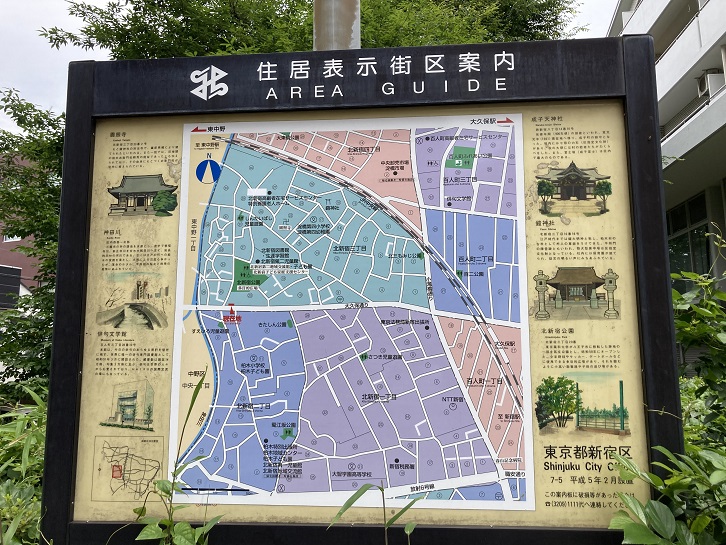 公園の近くに近所の名所を紹介した案内板が立っています。