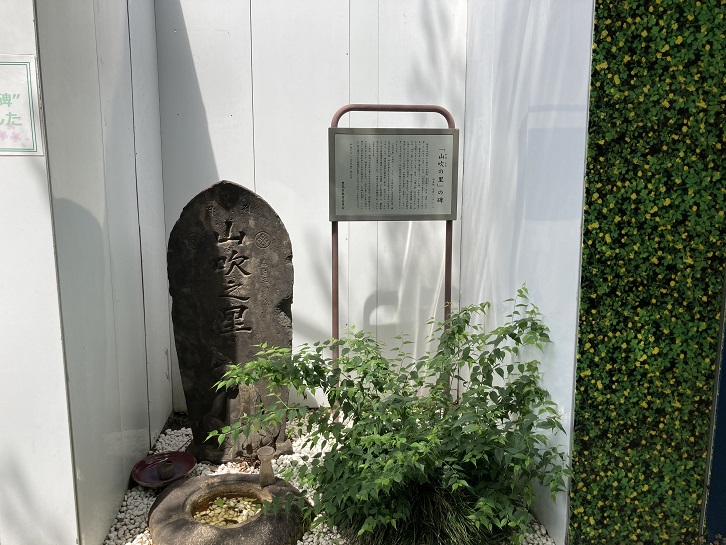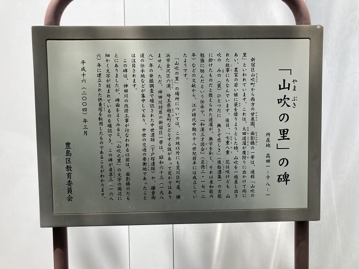 面影橋の近くの工事塀で囲われた窮屈な一画に「山吹の里」の石碑が建っています。