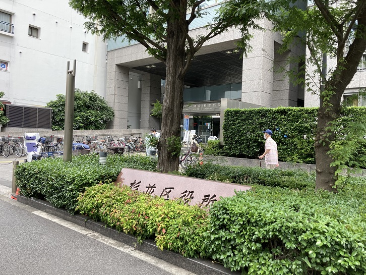 青梅街道の北側に面して杉並区役所の正面入口があります。杉並区で一番大きな町は荻窪だと思うのですが、区の庁舎は南阿佐ヶ谷駅横にあるんですね。