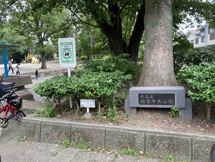 見所ポイント3の「梅里中央公園」は、国立視力障害者センターが移転した跡地につくられました。日本庭園風の池、明るい土の広場、草地の広場、そして木製遊具の広場と、中規模ながら見所の多い公園です。公園の外周には、クチナシ・アベリア・カンツバキなどの背の低い木々が生け垣をなし、その上にサクラ、エンジュ、ケヤキなどの高木が濃い緑陰をつくっています。「杉並区を花いっぱいに」のスローガンと共に、各地で花の名所づくりに取り組んでいます。この梅里中央公園は、「ロウバイの名所」にすべく取り組んでいるみたいです。