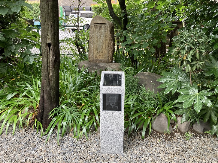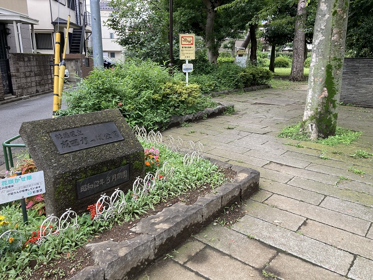 この前の道は、大宮八幡宮の参道です。参道に面して、「鞍掛けの松」があります。この松の名称は、平安時代の武将・源義家(1039年〜1106年)が、奥州遠征の折、この松の枝に馬の鞍を掛けた、という伝承に由来します。この伝承は、「江戸名所図会」(江戸時代の地誌)にも紹介されています。松そのものは代替りしていますが、こうした伝承が地元に長く語り伝えられてきたことは、この地の歴史の古さを物語るものといえます。