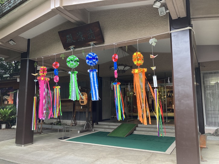 「茅の輪くぐり」は、素盞鳴尊とされる武塔神に善行を施した蘇民将来が、茅の輪を腰につければ疫病に掛からないと言われた古事に由来するとされています。