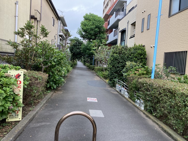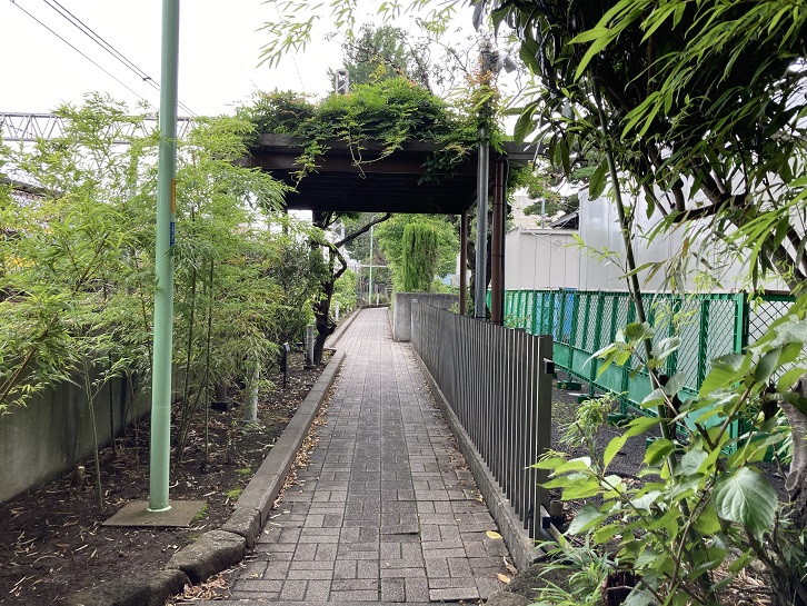 見所ポイント2の光明院はJR中央線の線路に接しています。環八北側から駅の西口に通じる道路がないので、線路添いの境内の通路が地元民の往来の抜け道になっています。