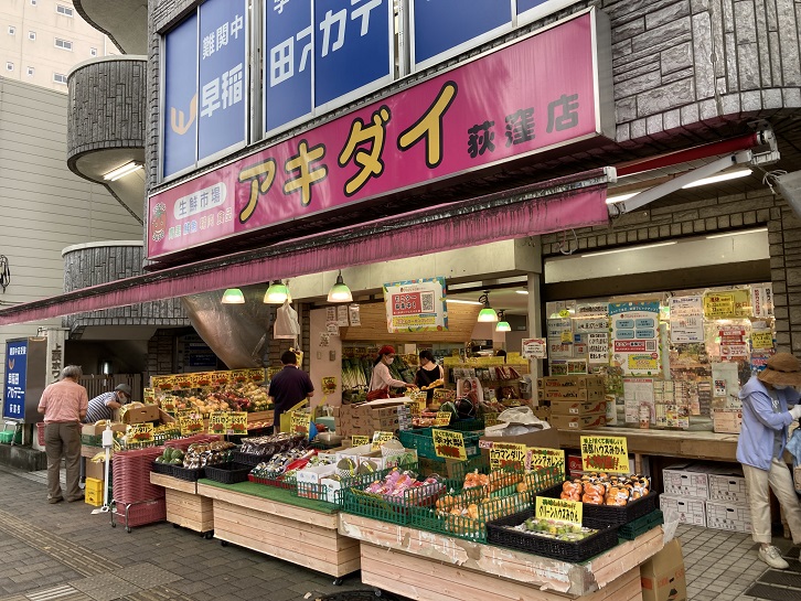 アキダイさんは練馬区関町に本店があるスーパーマーケットチェーンですが、荻窪にも青梅街道に面してお店があります。都内に本店を置いているために在京キー局から近いことや中小企業が故に取材がし易いこともあり、天候の影響による農作物の値上げや消費増税などの話題の際にテレビ局のニュース・情報番組から取材を受ける事が多いことで知られています。2019年の新語・流行語大賞では、「軽減税率」で名物の秋葉社長が受賞しました。
