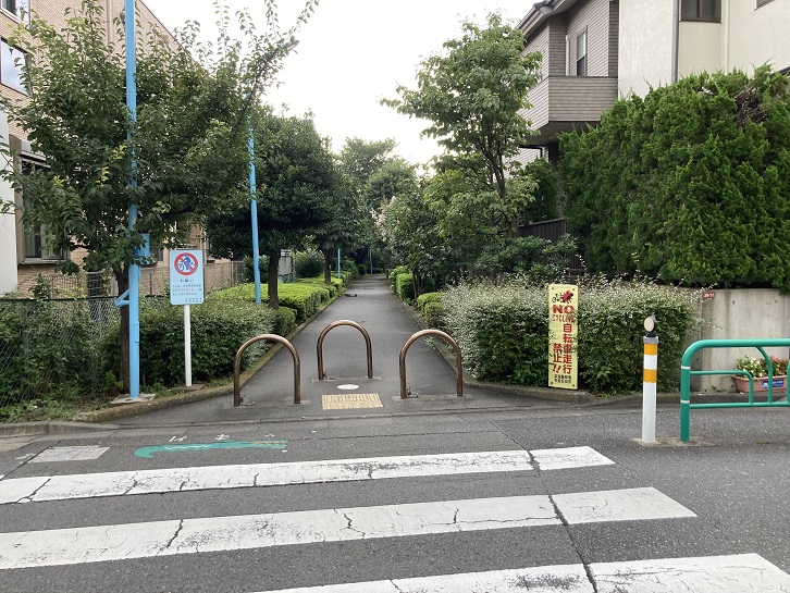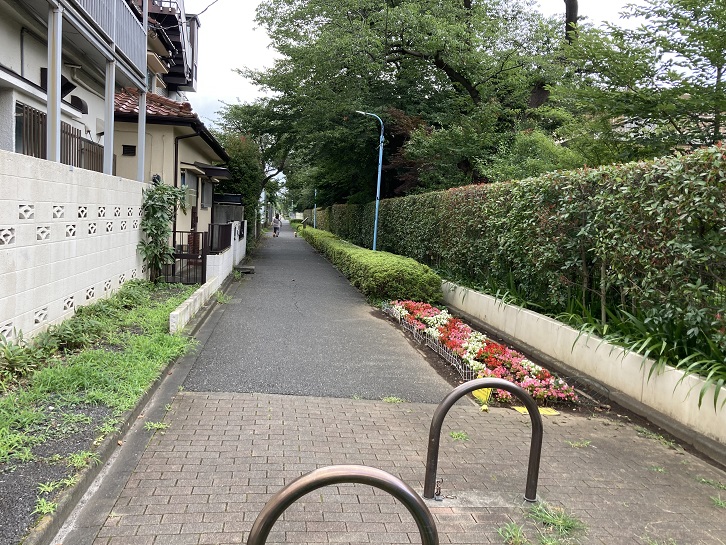 住宅地の中に川の流路の跡に造られたと思われる遊歩道が見られます。記憶がはっきりしませんが、「東京の河川を歩く」で通ったことがある井草川遊歩道のようです。