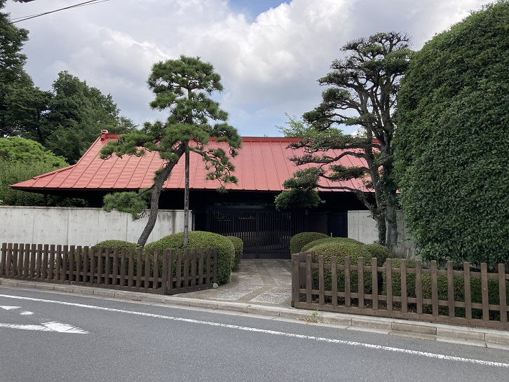 杉並区には、周囲を高い塀で囲った広大な敷地の屋敷が幾つか見られます。見所ポイント2の屋敷林は下井草駅近くの旧早稲田通りに面しています。敷地内には巨樹が生い茂り、まるで森林のような風景です。入口は長屋門風になっていて、なかなかの豪邸です。門前には枝振りの良い松の木が対になって植えられていて、植栽も美しく手入れされています。代々続く旧家なのでしょう。