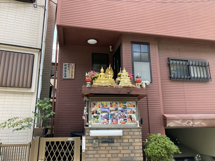 とある民家の門柱の上に、三体の黄金の仏像が鎮座しています。その下には、お坊さんの活動を伝える写真が添えられています。ここはラオス仏教協会の支部みたいです。ラオスはインドシナ半島に位置する社会主義共和制国家で、首都はヴィエンチャンです。フランスの植民地を経て、1953年に独立し、ラオス王国になりました。その後、1975年に王政が廃止され、社会主義体制のラオス人民民主共和国が成立しました。現在はラオス人民革命党による一党独裁体制が敷かれています。様々な理由で難民として日本に身を寄せる人も多く、ここもその人達の心の拠り所になっているのでしょうか?