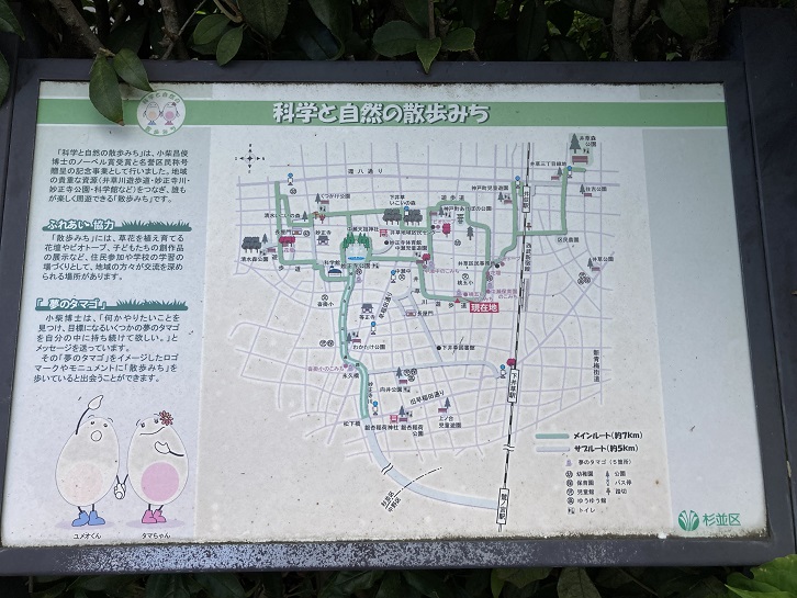 - 小柴昌俊博士のノーベル賞受賞を記念してつくられ、井草川遊歩道・妙正寺川・科学館などを周遊しています。