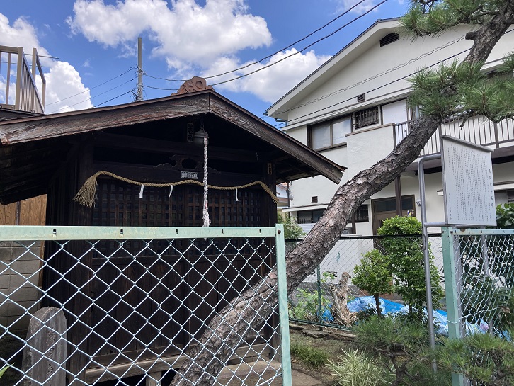 井草二丁目お地蔵様の近所に、もうひとつの祠が建っています。堂内は見れませんが、石塔が収められているとのことです。堂前の松の木が今にも倒れそうに傾いています。槍掛けの松のようですね。ちなみに、八成という地名は、観泉寺の住職が千川上水に架かる橋の名前を経典から八成(はっせい)橋と命名し、住民が「はちなり」と読み、それがいつしか地名になったと伝えられています。明治に入り井荻村(のちの井荻町)大字下井草の小字となり、昭和七年の杉並区制定に際し八成町に引き継がれましたが、現在の住居表示には採用されませんでした。しかし、今でも八成小学校の名前に残ってます。