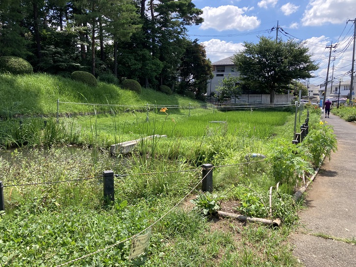 日本庭園の横には田んぼもあります。環境にうるさい杉並区民のこと、自然を尊重した本格的な有機栽培で米作りがなされているとのことです。
