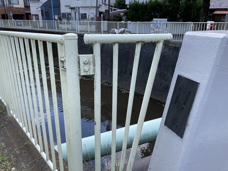 橋の袂に鎌倉橋の案内板が立っています。