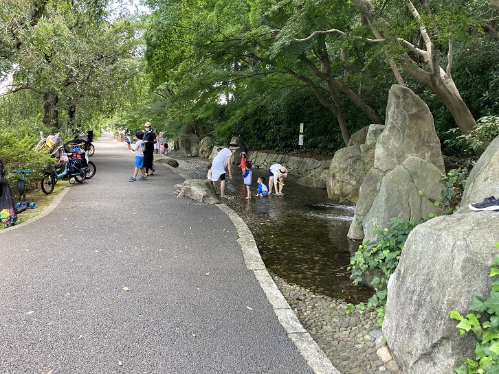 遊歩道に沿って竹林も植栽されていますので、春には筍も見られることでしょう。また、水の流れもありますので、暑い時期には子供達の水遊びもできます。