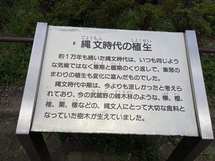 縄文時代の人々の生活ぶりを解説した案内板が立っています。