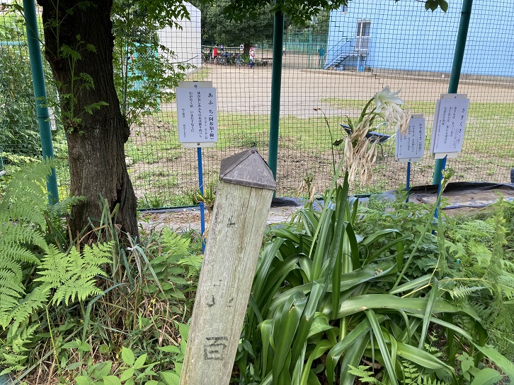 - この植物園は向陽中学校の創立四十周年を記念して、学校、PTA、地域の協力のもとに開園しました。
