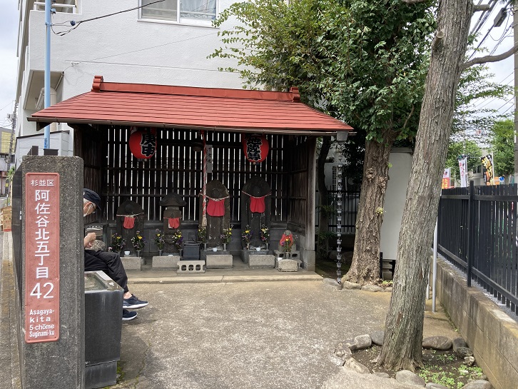 早稲田通りに面して、見所ポイント5の「阿佐谷庚申堂」が祀られています。