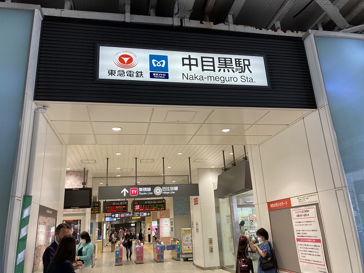 中目黒駅に着きました。一昔前はダサいイメージの駅でしたが、現在は東横線の駅らしく小綺麗になっています。山手通りを挟んだ反対側には高架下モールに蔦屋も入っています。