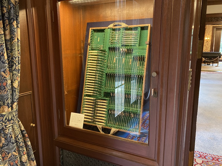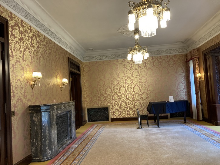 大客室は小客室と似た造りですが、ピアノ以外、テーブルやソファーなどの家具は置かれていません。見学者がゆったりとソファーに座り込んでも困りますからね。