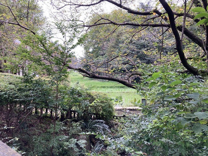 その庭園は木々に囲まれ、まるで森林公園の広場みたいです。
