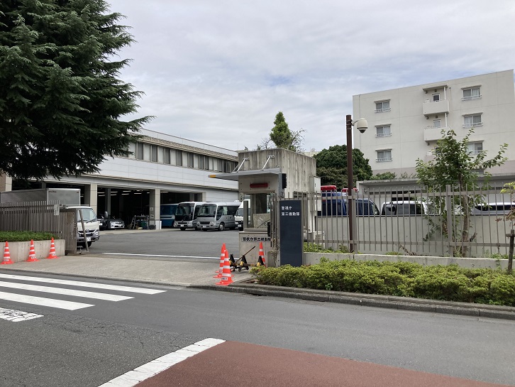 目黒川緑道に下る坂道の途中に、警視庁の第3機動隊(通称「3機」)の本部があります。3機のシンボルマークは外車のベンツに似たデザインで、「ほこりの三機」と呼ばれています。円は太陽と和、三つの柱は光と隊訓の「誠実・融和・奉仕」と両手を高々と上げて力強く躍進する人を表わし、「気はやさしく力持ち」という先代のシンボルマークである桃太郎の精神を継承しつつ昭和五十四年に制定され、平成六年に現在のマークになりました。