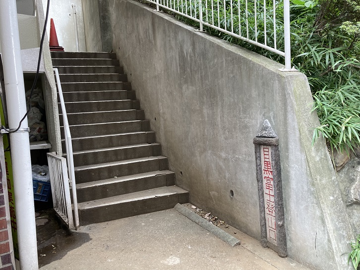 石段の脇に、目黒富士登山道と記された階段があります。目黒富士に登るための登山道です。