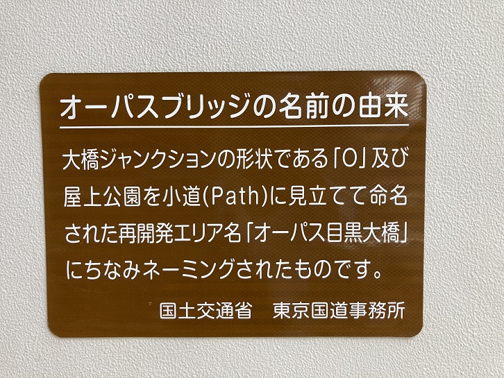 大橋ジャンクションの形状である「O」及び屋上公園を小道(Path)に見立てて命名された再開発エリア名「オーパス目黒大橋」にちなみネーミングされたものです。