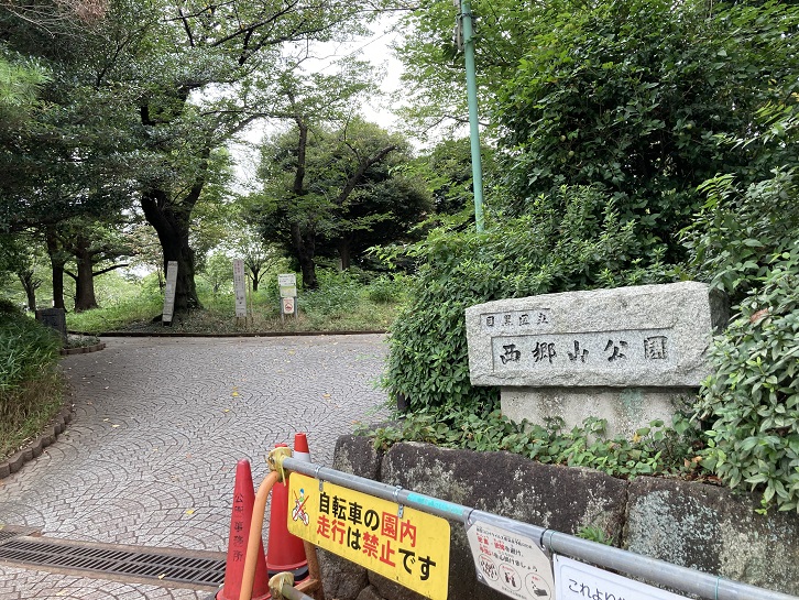 西郷山公園は目黒区の「みどりの散歩道」のコースに組み込まれています。公園の入口に由来を記した案内板が立っています。公園のすぐ先の旧山手通りに架かる橋の名前も西郷橋になっています。橋の下を道路が通っていますが、この橋は下の道路を渡るための橋でも、旧山手通りの陸橋でもなく、ここに三田用水を渡すために架けられた水道橋だったとのことです。