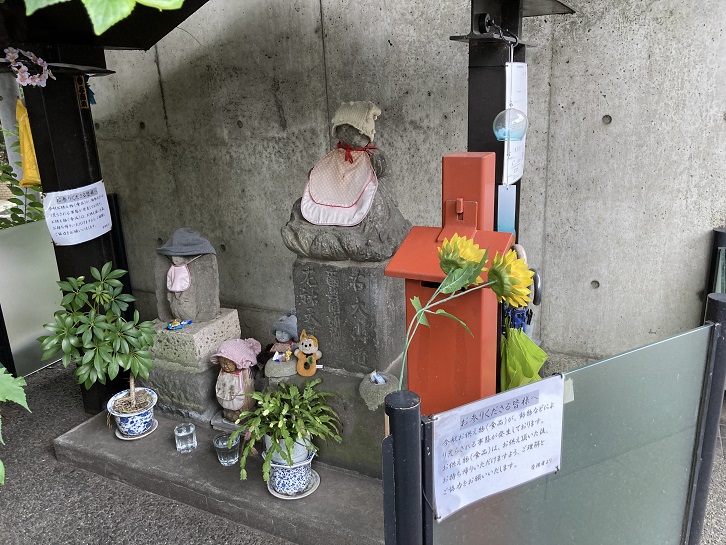 旧朝倉家住宅の向かいに小さな地蔵尊が祀られています。