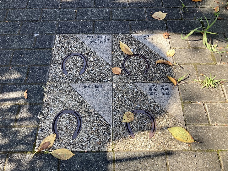 馬事公苑通りの歩道には、寄贈者と思われる方の氏名が刻まれたブロックが所々に敷かれています。ブロックには蹄鉄が埋め込まれていますね。世田谷区では「うままちプロジェクト」なるものがあり、馬事公苑と最寄り5駅(千歳船橋駅・経堂駅・上町駅・桜新町駅・用賀駅)のルート上の道路や公園等に「馬の蹄鉄入りのブロック」が埋め込まれています。これはふるさと納税の仕組みを利用したクラウドファンディングで寄附を募り、各駅から馬事公苑まで続いているそうです。そうか、世田谷区の「馬事公苑界わいコース」は「うままちプロジェクト」の各駅と馬事公苑を結ぶルートなんですね。納得!