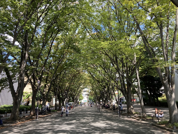 - 今日は世田谷区の「馬事公苑界わいコース・千歳船橋駅→馬事公苑」を歩きます。小田急線千歳船橋駅をスタート地点として、千歳通りを南下し、品川用水の遺構と桜並木の景観を眺めながら馬事公苑けやき広場に至ります。千歳船橋から馬事公苑へは、千歳船橋駅付近で2通りのルートが設定されています。今回は、城山通りを駅南口から線路沿いに祖師谷大蔵駅方向に進み、NTTドコモの前の交差点で左折して千歳通りを馬事公苑に向かうルートとなります。尚、ウォーキングマップが英語版しか入手できませんでしたので、一部表記は英語になっています。