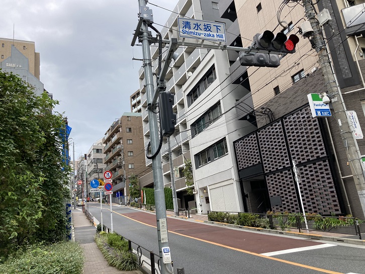 清水坂は、清水坂下交差点から湯島天神方向に上がる長さ約100mほどの急坂です。明治時代、ここの土地は清水精機会社の所有でした。大正時代に入ってから清水精機社は土地を町に提供し、坂道を整備しました。この功績を称えて「清水坂」の坂名が付けられました。坂下近くに「清水坂」と刻まれた石柱が建っています。