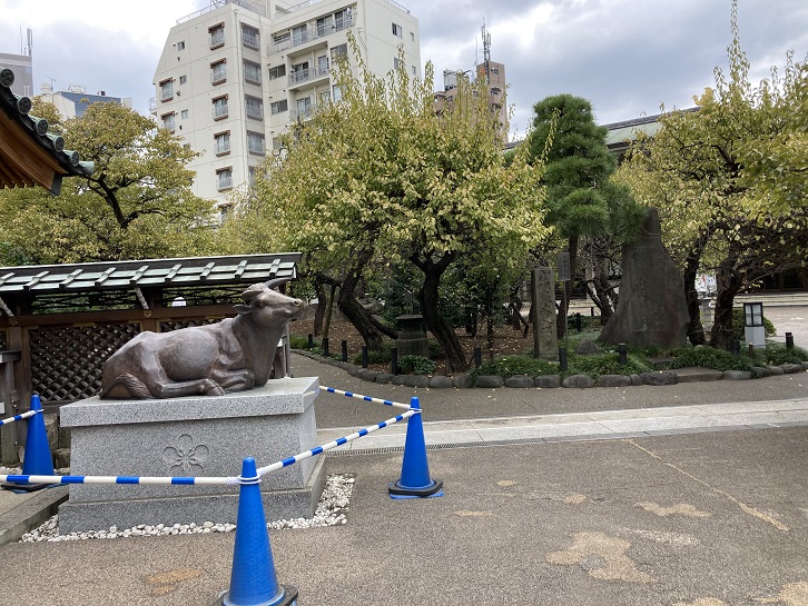 菅原道真公お遣いの牛さんを撫でてはいけないようです。