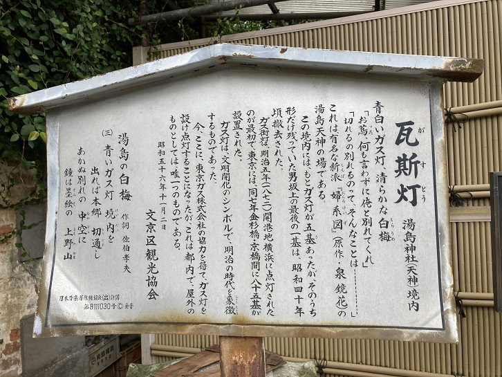 瓦斯灯 湯島神社(天神)境内