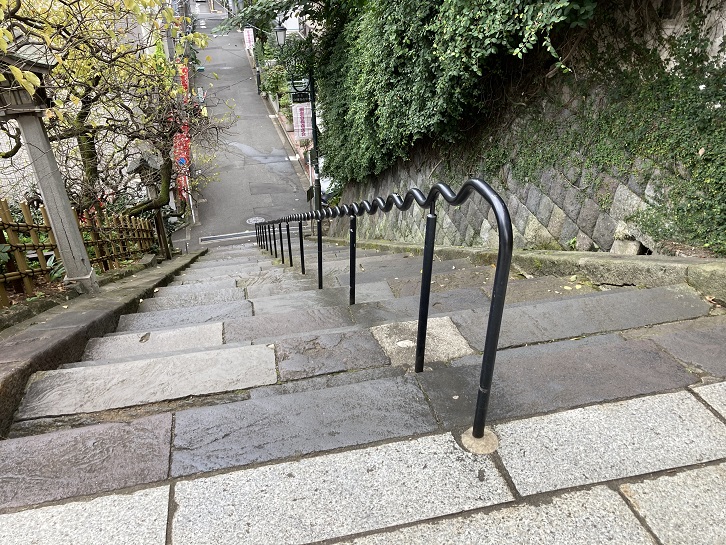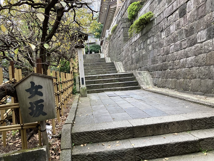 大きな神社には男坂と女坂がありますが、湯島天神では男坂のことを天神石坂と呼んでいます。天神石坂は長さ約15mほどの急階段で、別名を天神男坂といいます。湯島天神参拝のための坂で、すぐ脇にある緩やかな女坂に対比して男坂と呼んでいます。