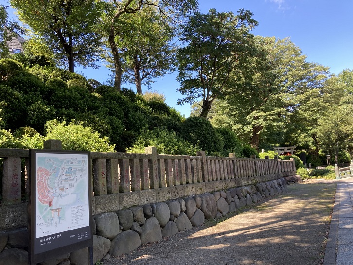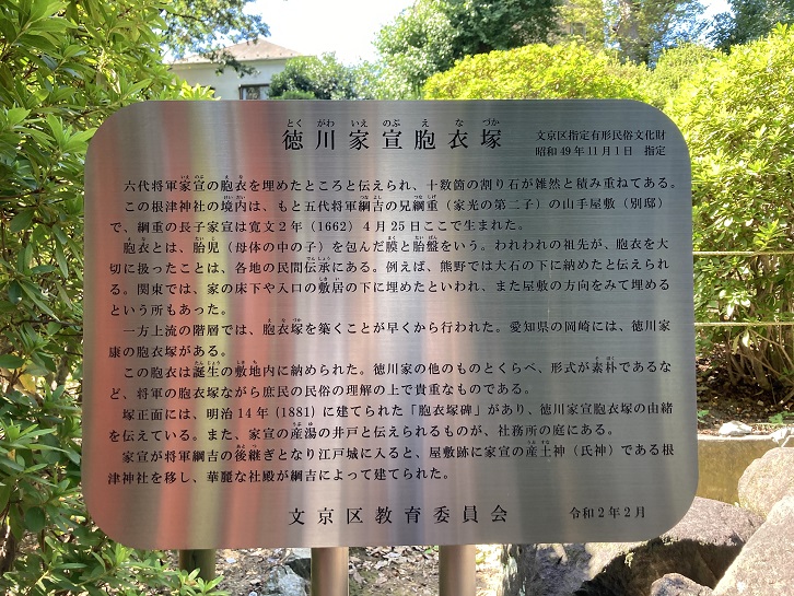This marks the location where Tsunatoyo (lenobu), the sixth Tokugawa Shogun, was born. Nezu-Jinja Shrine became the tutelary deity of the birthplace (a protective deity) of the Shogun, and in 1706, Shogun Tsunayoshi had the shrine structure