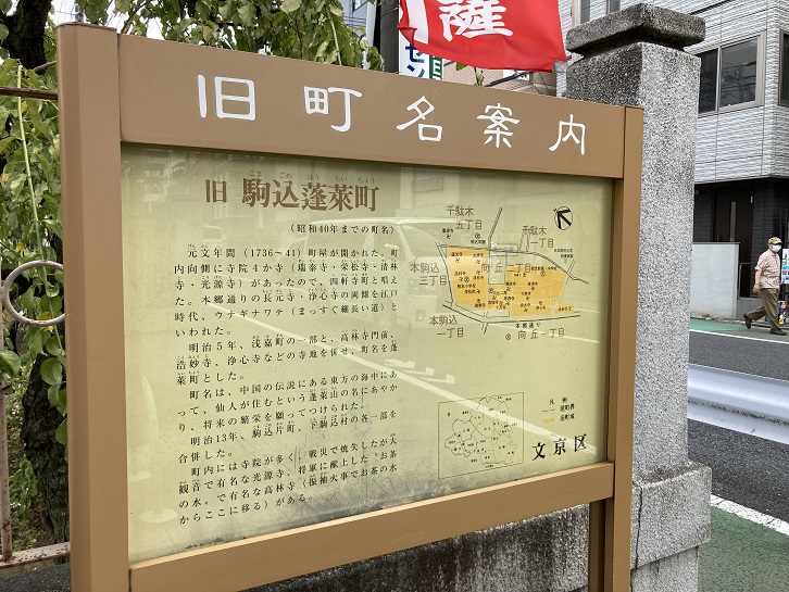 本郷の町名の由来を記した案内板が立っています。