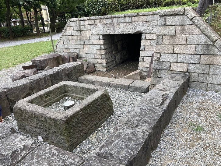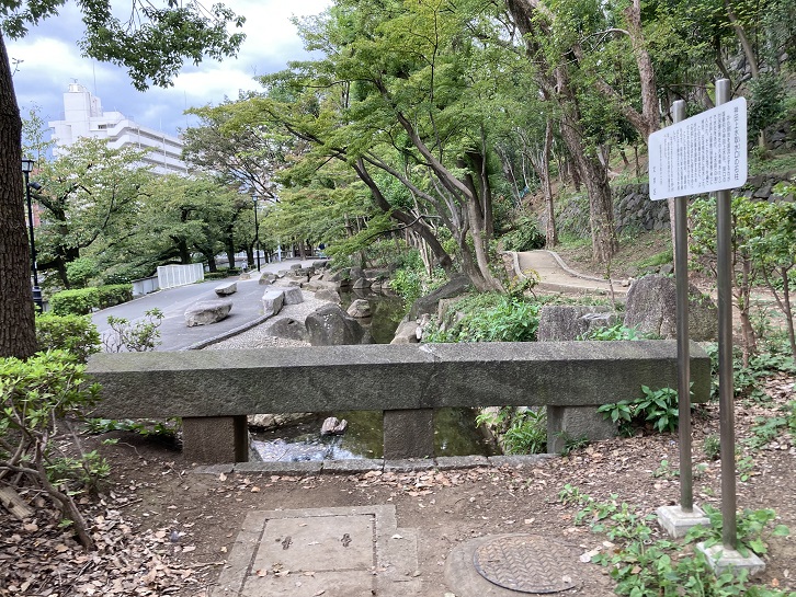 公園の南側に水の流れない水路があります。神田上水の石樋を公園内に復原したものだそうです。