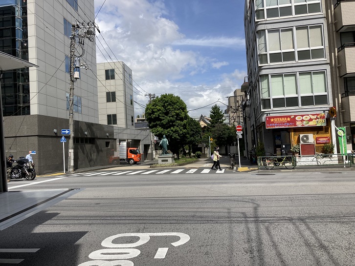 本郷三丁目交差点で左折し、本郷通りに入ります。壱岐坂上交差点を右折し、壱岐坂を下ります。壱岐坂は、東洋学園大学本郷キャンパスの北側から壱岐坂通り(新壱岐坂)を斜めに横切って白山通りの壱岐坂下交差点に抜ける旧道です。長さは約260mほどあり、緩やかな下り坂になっています。江戸時代に彦坂壱岐守屋敷があったことが坂名の由来になっています。別名として、壱岐殿坂・いきどん坂があります。