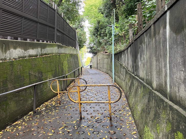 付属横坂は、跡見学園とお茶の水女子大学の間を通った先の筑波大学附属中・高校付近から始まって、音羽通りに面した大塚警察署前の交差点に至る長さ約180mほどのS字状に曲がる坂です。音羽ハウスのところでやや急坂になっています。道幅が広く、舗装も綺麗で、歩道の街路樹も美しい気品ある坂として知られています。付属横坂とは珍しい名前ですが、坂道の両側に跡見学園・お茶の水女子大学、それに坂名の由来になったと思われる筑波大学(かっての東京教育大学)の付属校が並んでいることからある意味妥当なのかもしれません。