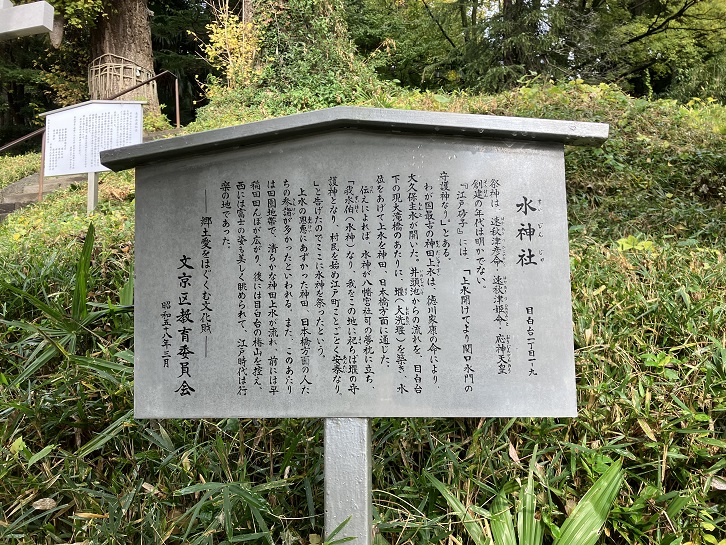 胸突坂の坂下に見所ポイントIの「水神社」があります。神田川の守護神である水神を祀っています。
