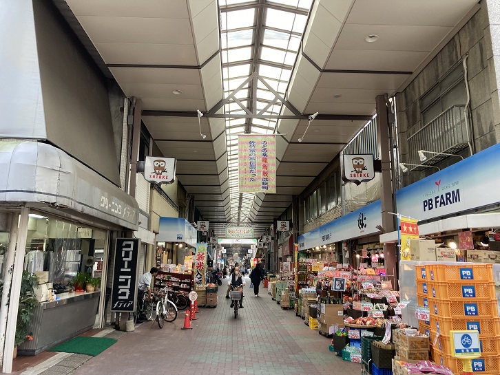 秋葉神社の参道と見所ポイントAの「佐竹商店街」が交差しています。