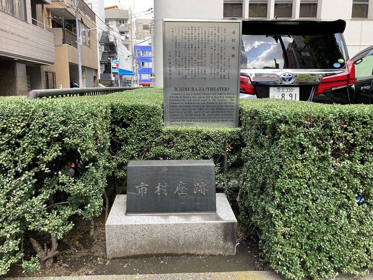 Ichimura-za was a Kabuki Theater first built in 1634 in Nihonbashi Hukiya-cho, and in 1842 it moved to Asakusa Saruwaka-cho, and moved again to this location. The Ichimura-za, Nakamura-za, and Morita-za were the three famous and popular theaters in this area in the Edo era, they were known as the "Edo 3 za". The Ichimura-za was burnt down in 1893, and it rebuilt and renamed Tokyo Ichimura-za. In 1923 during the great kanto earthquake, it was burnt down again and rebuilt, but when it burnt down again for the third time in 1932, it was not rebuilt and therefore lost forever.