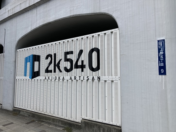 蔵前橋通りを戻って、JR線の高架下に設けられた施設に向かいます。「2K540 AKI−OKA ARTISAN」は、2010年12月10日に開業し、JR東日本都市開発が山手線・京浜東北線の秋葉原駅〜御徒町駅間の高架下で運営する商業施設です。名称の「2K540」は東京駅を起点としたJR東北本線の距離(キロ程)で、東京駅から2、540m=2K540m付近に位置することを示し、「AKI−OKA」は秋葉原駅と御徒町駅の中間にあることを、「ARTISAN」はフランス語で「職人」をそれぞれ意味します。この周辺には古くから職人が多く住んでいて、近年は自ら「モノづくり」を行うクリエイターが増えてきていることから、こうした「モノづくり」の土壌を生かし、職人的なクリエイターによる店舗を入居させ、従来型の商業施設と異なるコンセプトで運営を行っています。第一期として入居している32店舗はアトリエや工房を構えたものが中心となり、カフェなどもあります。見たり購入したりするだけでなく、訪れた人が「モノづくり」を体験できるワークショップも開催しています。2011年9月29日には、第二期として北側に新たに20店舗がオープンしました。