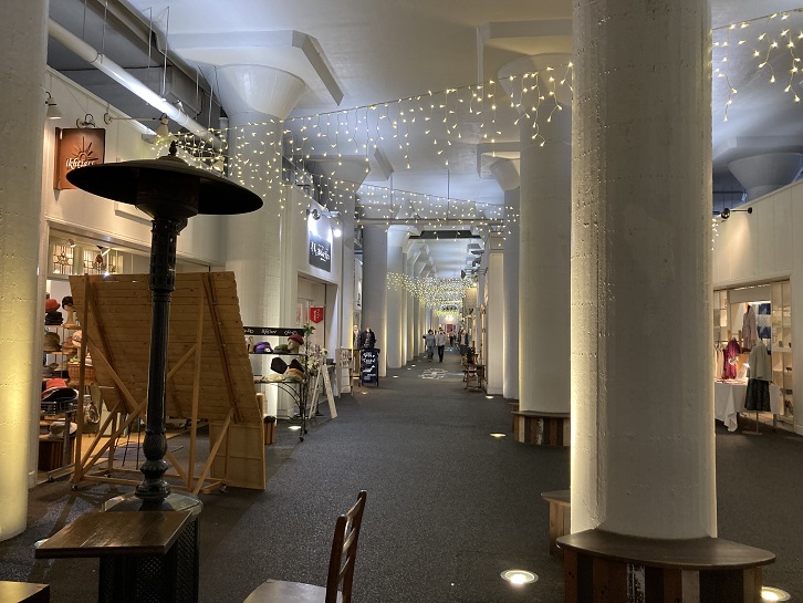 商業施設は高架下とは思えないほど広々としていて、天井や高架を支える柱も神殿のような雰囲気を醸し出しています。お店の飾り付けもお洒落で、まるで高級ブティックが並ぶ高級モールのような感じです。JRが運営していることもあって、壁にはさりげなくJRの祖である鉄道省時代に製造された機器が展示されています。